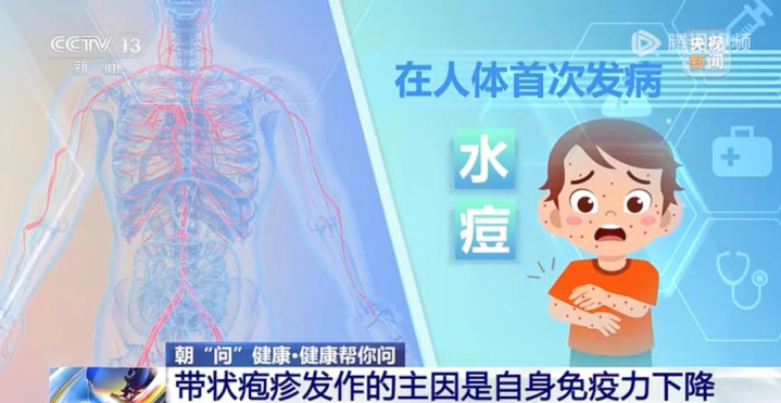 “小时候感染的水痘-带状疱疹病毒会长期潜伏在神经节内,当近期身体因熬夜、劳累、感染导致免疫力显著下降时,这些处于休眠状态的病毒就会被再次激活,并沿着神经纤维移动到皮肤表面,引发疼痛和簇集水疱。”